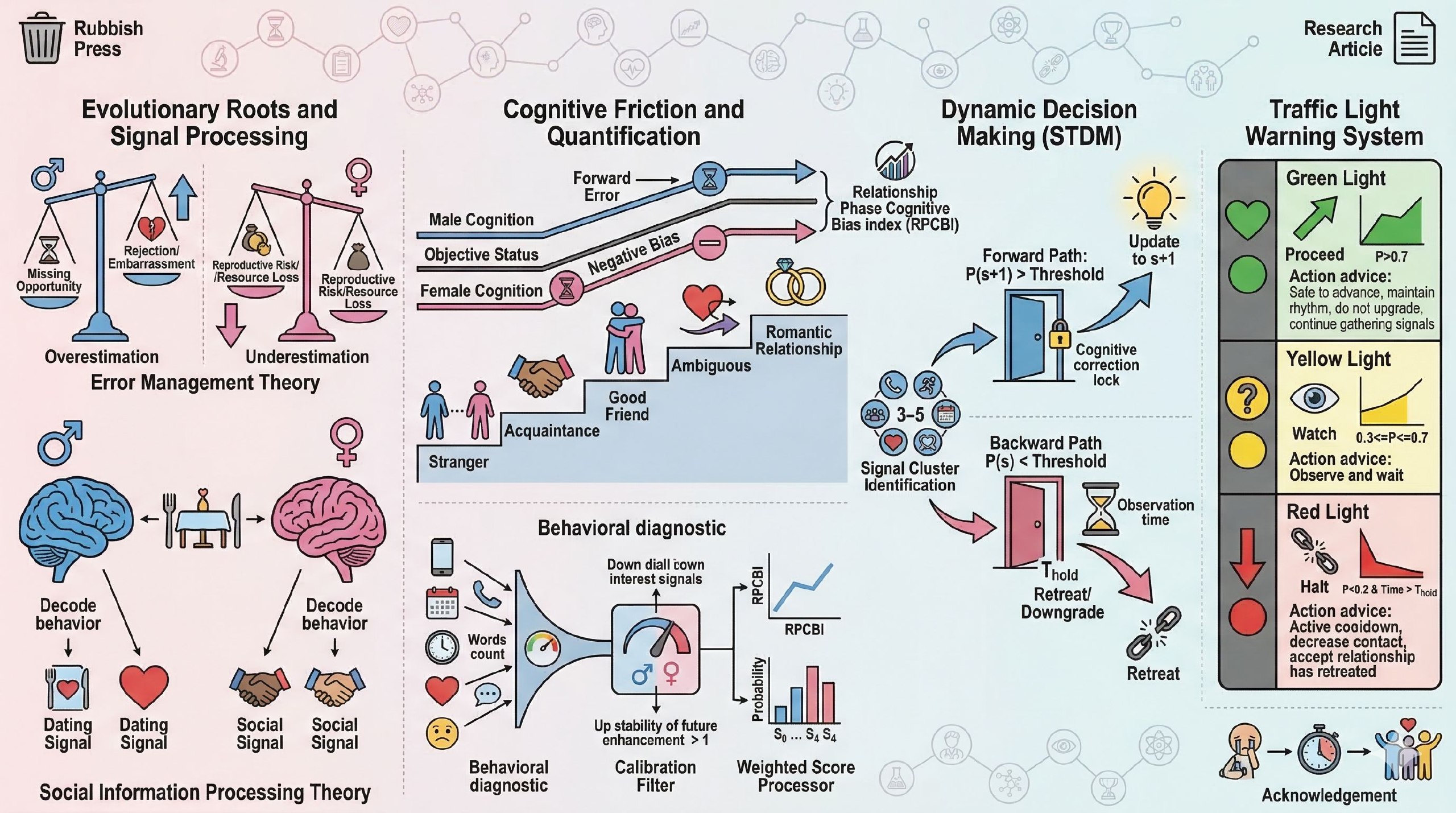第三,缺乏动态决策模型。关系进展是时序演化过程,单次判断的偏差会被后续互动放大或修正,现有研究多为横断设计,未能捕捉这一动态特性。