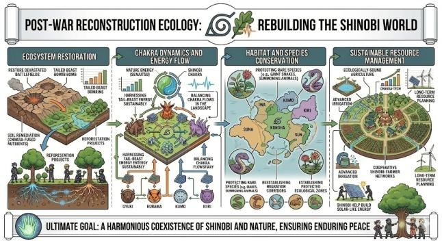 在忍界大战结束后,生态学研究可能在多个领域发挥作用。例如,战场区域的生态恢复需要对植被重建与物种恢复进行系统规划;尾兽作为高能量生命体,其栖息环境管理也涉及复杂的生态平衡问题;此外,忍界长期发展过程中对自然资源的合理利用与环境保护,也需要依赖生态系统层面的科学研究。