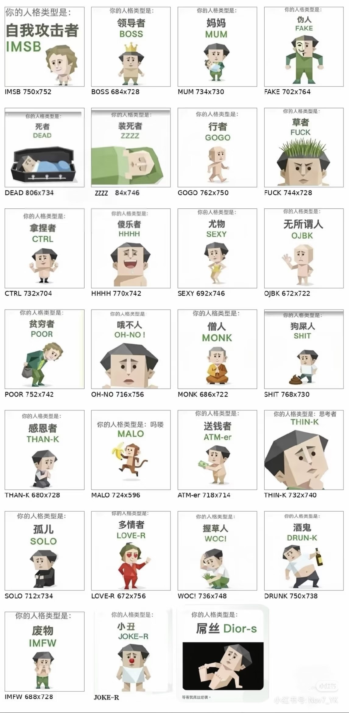 - MBTI的“合法性危机”:经过七年的泛滥,MBTI已经从“自我发现的工具”异化为“社会规训的枷锁”(招聘筛选、相亲标签、职场站队)。公众对它的态度从“好奇”变成了“厌烦”。SBTI的“发疯文学”恰好提供了合法宣泄的出口——它不假装科学,不假装深刻,直接告诉你“我就是来搞笑的”。这种自我解构的姿态反而赢得了信任。