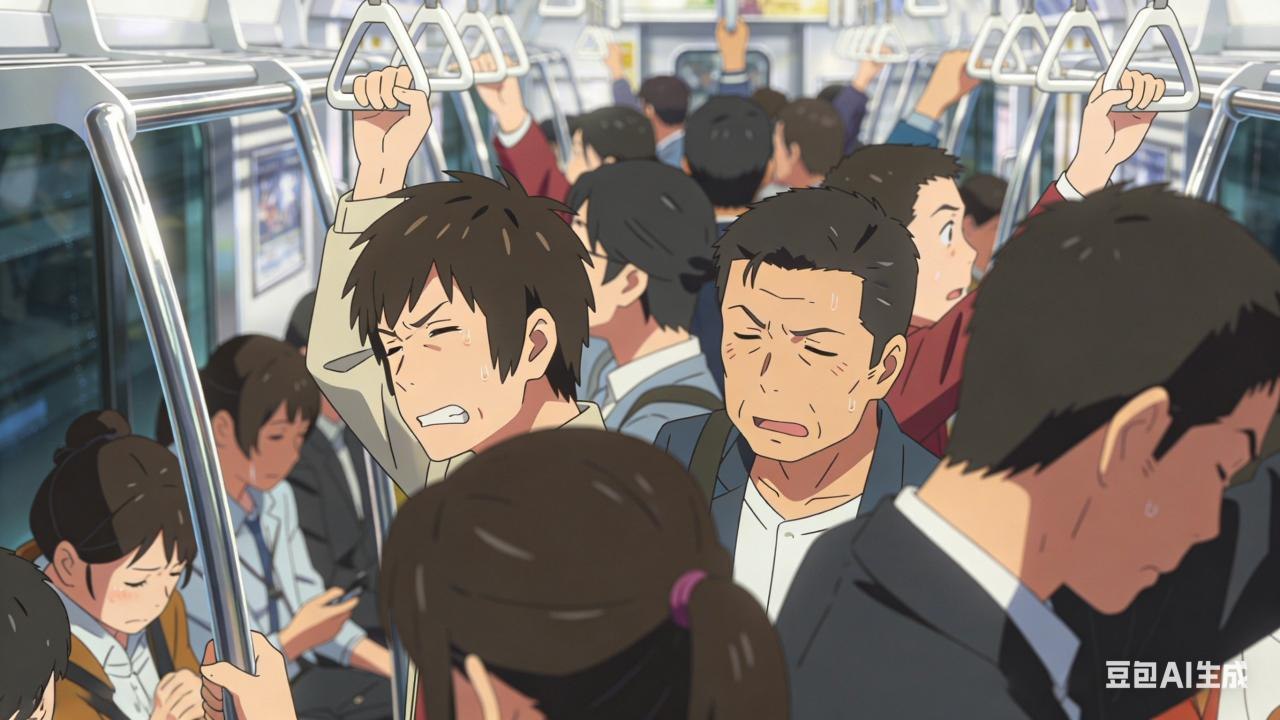 大多数打工人通过公共交通进行通勤。那便引出了另一个并发结局:夹缝式地铁生存。打工人们为了按时上班,不得不在挤上拥挤的公共交通,这对打工人的身体形成物理压迫的同时,在心理上也形成了“拥挤性”排他壁障!
