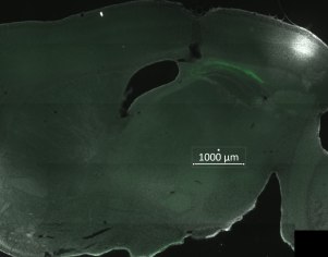 小鼠海马体双边植入光纤,植入时间超过三个月,小鼠的海马体可能会被压扁。